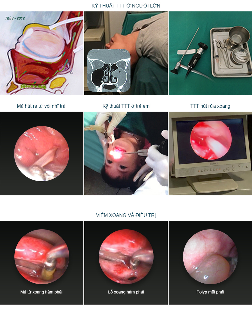Trên trang web này chúng tôi đặc biệt chỉ giới thiệu với bạn đọc về các bệnh lý nhiễm khuẩn xảy ra ở vùng Tai Mũi Họng và giải pháp điều trị tích cực tại chỗ qua nội soi của kỹ thuật Thủy Trần (TTT). Công nghệ này đã được cấp bản quyền sở hữu trí tuệ quốc gia năm 2013. Trong trường hợp người bệnh có polip mũi hoặc bất thường cấu trúc vùng OMC bệnh nhân sẽ được can thiệp bởi một phẫu thuật chức năng tối thiểu (MIST) để mở đường hút rửa hốc mũi xoang (TTT).
